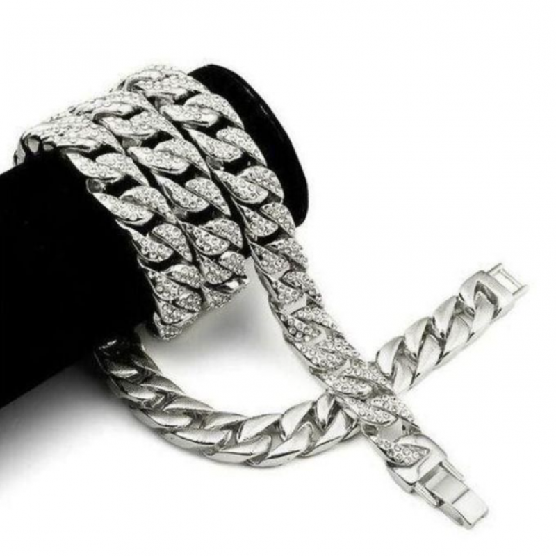 Fonction: Collier Hip Hop Iced Out Crystal Miami Cuban Chain Necklace; Sexe: Hommes