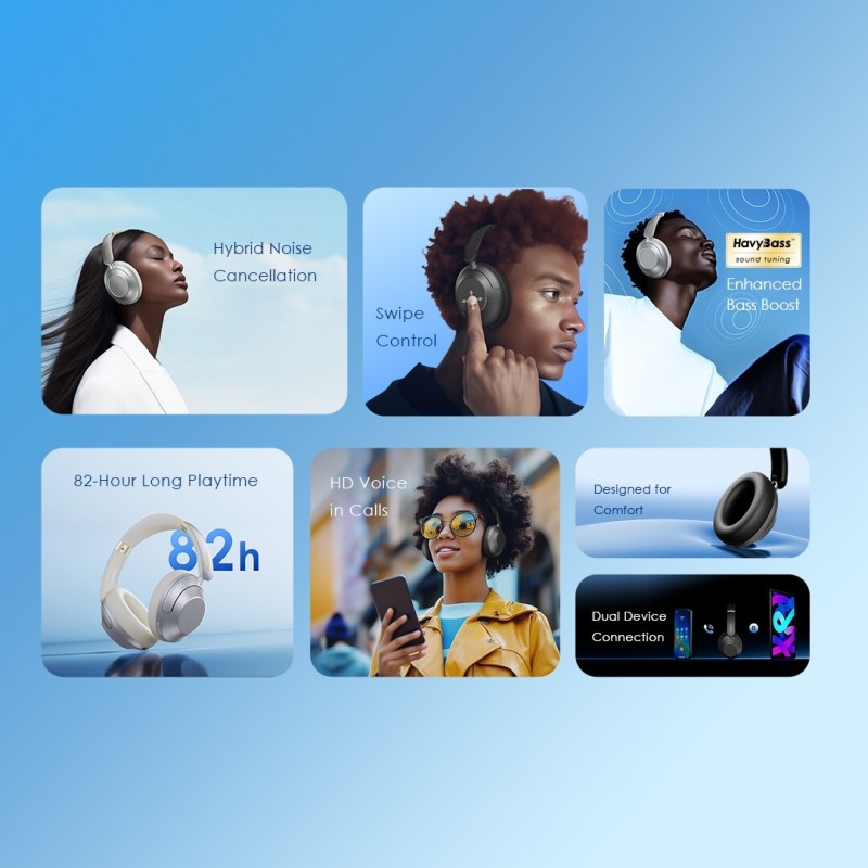 Oraimo Casque sans fil BoomPop Pro avec réduction de bruit hybride