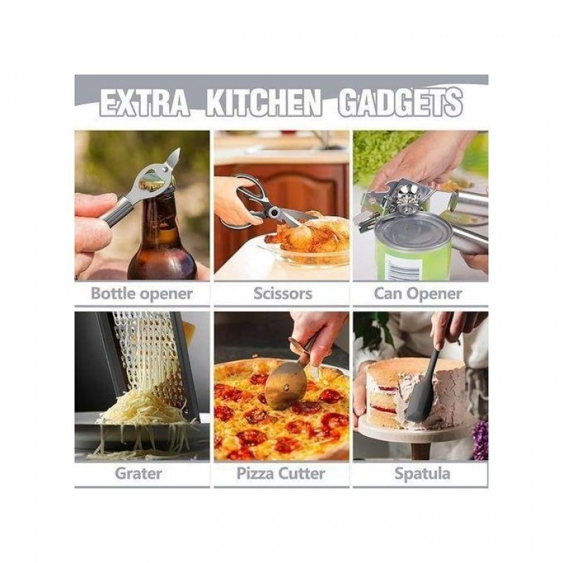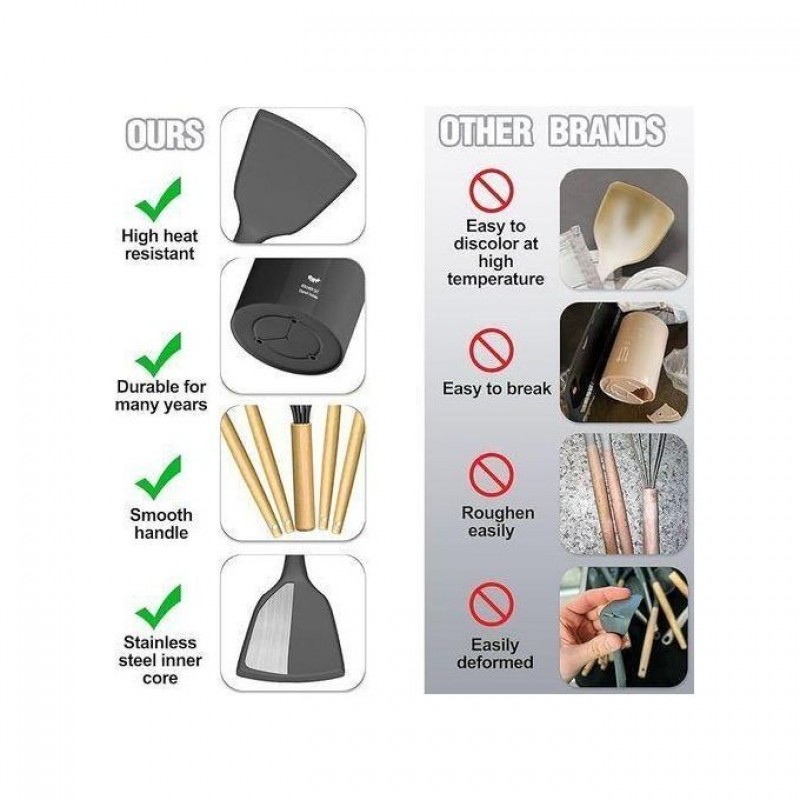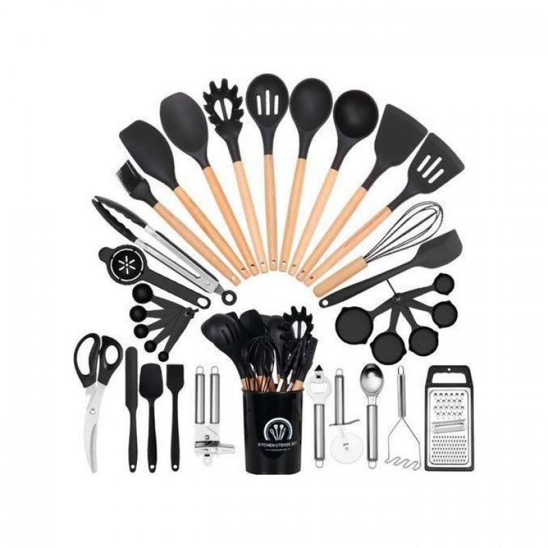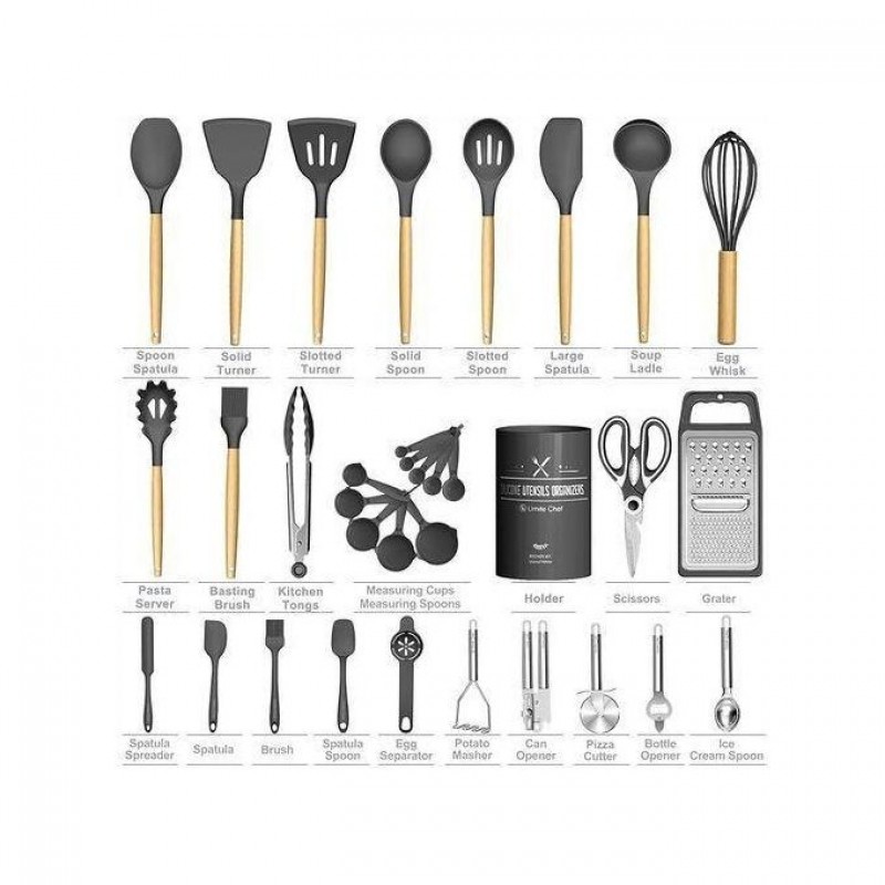 Ustensiles et gadgets de cuisine avec poignées antidérapantes en silicone.