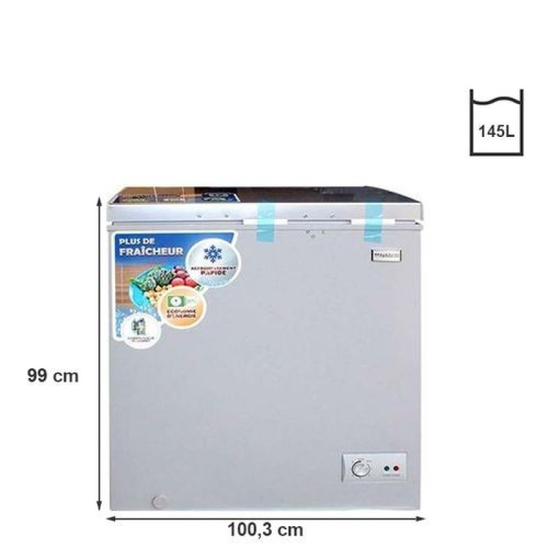 Découvrez le congélateur KNAS-250, un choix parfait pour répondre à tous vos besoins de stockage alimentaire. Doté d'une capacité généreuse de 145 litres, ce congélateur spacieux vous offre amplement d'espace pour conserver vos aliments frais et vos boissons préférées.